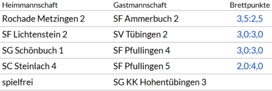 2 | 19.10.2025 | SG Schönbuch 1 - SC Steinlach 4 |