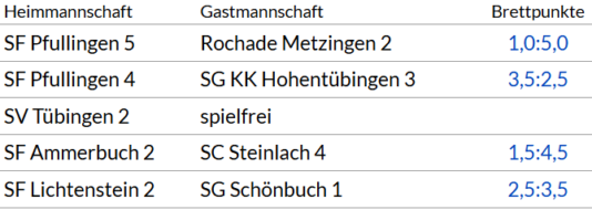 6 | 08.02.2026 | SG Schönbuch 1 - SF Pfullingen 4 |