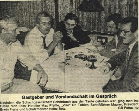 Es war der 26.09.1980 als bei der außerordentlichen Hauptversammlung des Schachvereins Herrenberg nach kontroverser Diskussion, der komplette Vorstand, namentlich die Herren Betz, Franz, Maurer und Dr. Tobien von ihren Ämtern zurück traten und den Schachverein Herrenberg verließen.